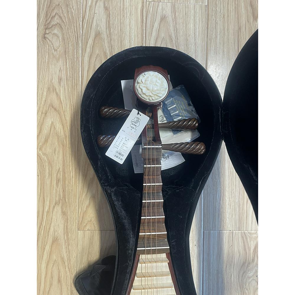 SKU # 14187 PIPA541Dunhuang Pipa, #541, Collection Grade, Burmese Rosewood, Aged Rosewood with camel bone, Clear Water Style varnish, Mudan Flower head.